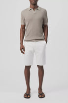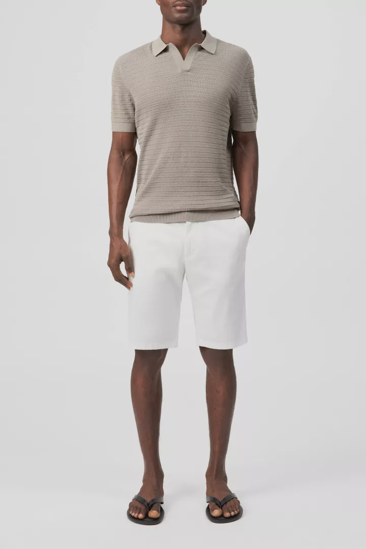 BRAIAN is a knitted polo with an open placket and a form-fitting silhouette. The mercerised cotton and textured surface ensure a soft and comfortable feel, making it a perfect summer essential.