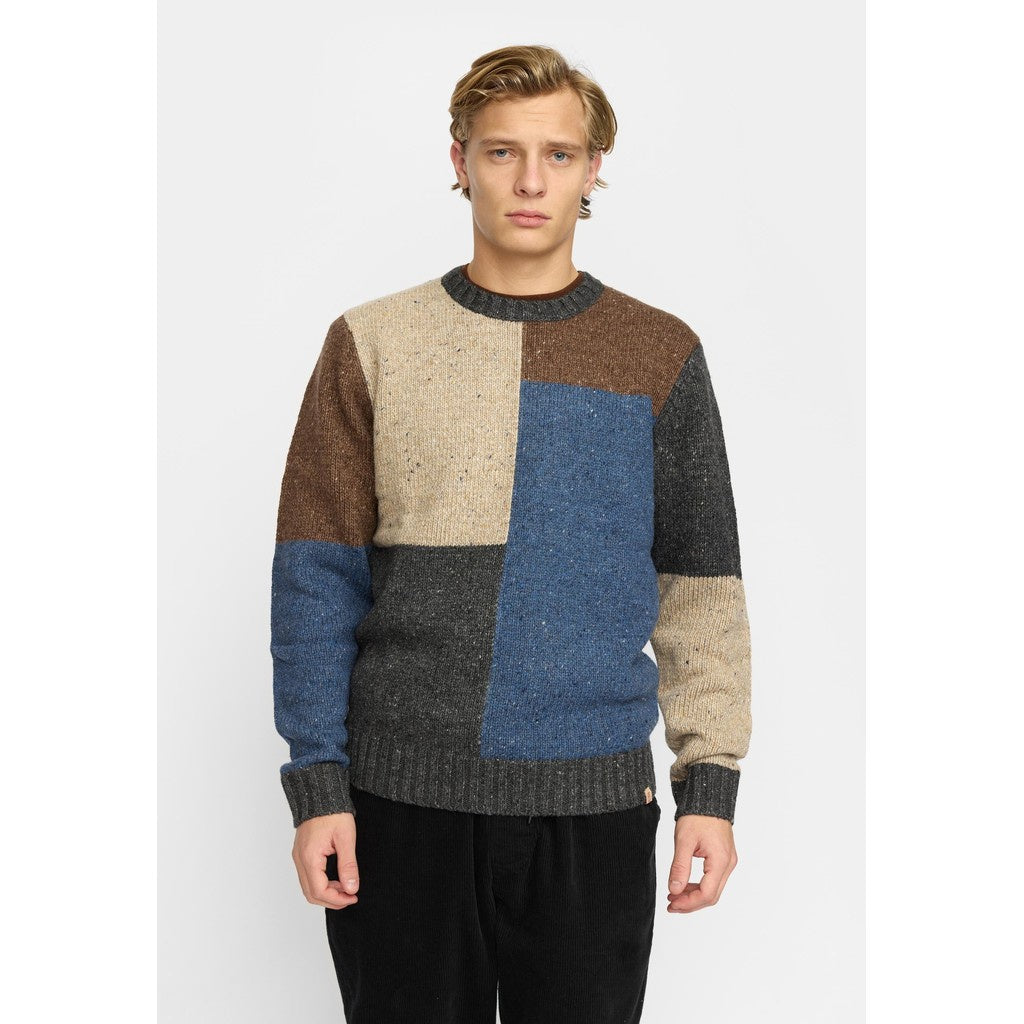 A blend of alpaca, extra fine soft merino wool, gives a soft and chunky feel to this knitted jumper. Nylon has been added to the yarn for lightweight and durability properties. The crew-neck regular-fit style comes in blocked color combination with a subtle nep texture to create a mélange effect. Knitted in a chunky 3 gauge, you can use this heavy sweater as a standalone in autumn and as a layering piece in wintertime